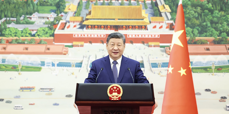 习近平指出,今天的世界,百年变局加速演进,国际形势变乱交织,全球性挑战更加突出。分裂对抗、零和博弈注定没有出路,让世界重回丛林法则不得人心,同球共济、团结合作才是唯一正确选择。我提出全球治理倡议,旨在推动构建更加公正合理的全球治理体系。中国将始终站在历史正确一边,以人民之心为心、以天下之利为利,同各国一道推动构建人类命运共同体。