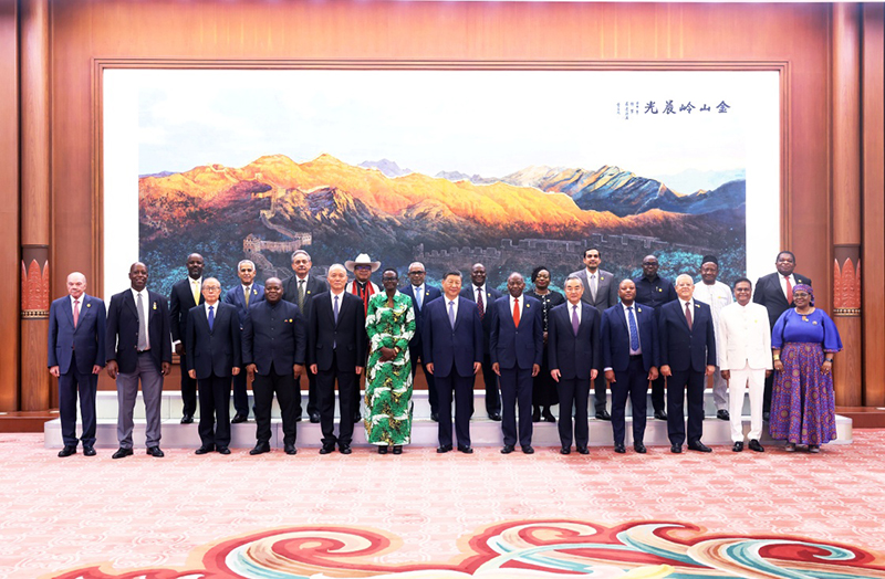 8月20日下午,国家主席习近平在北京人民大会堂集体会见出席全国人大加入各国议会联盟40周年纪念活动暨第六次发展中国家议员研讨班外方议会领导人。新华社记者 刘卫兵 摄