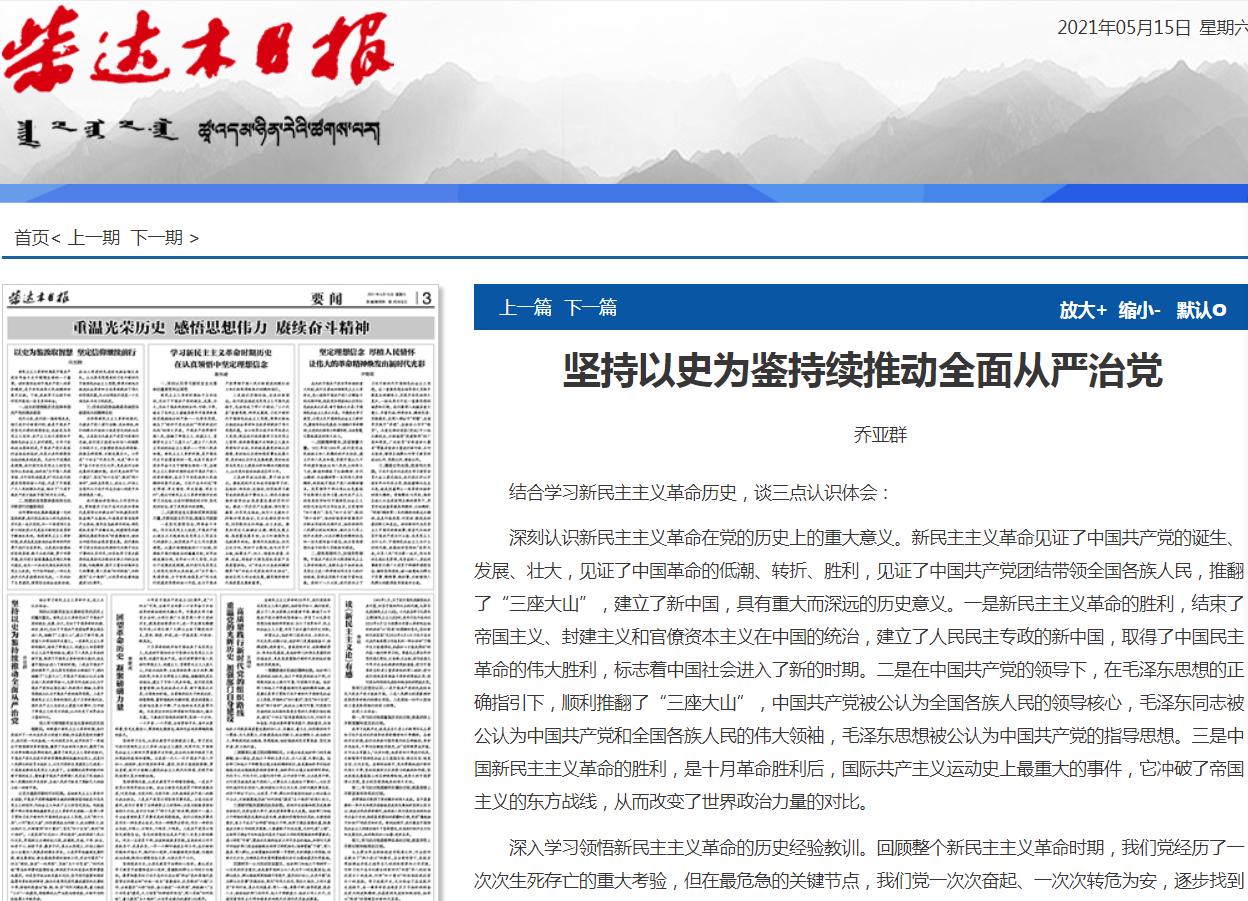 | 坚持以史为鉴持续推动全面从严治党 乔亚群