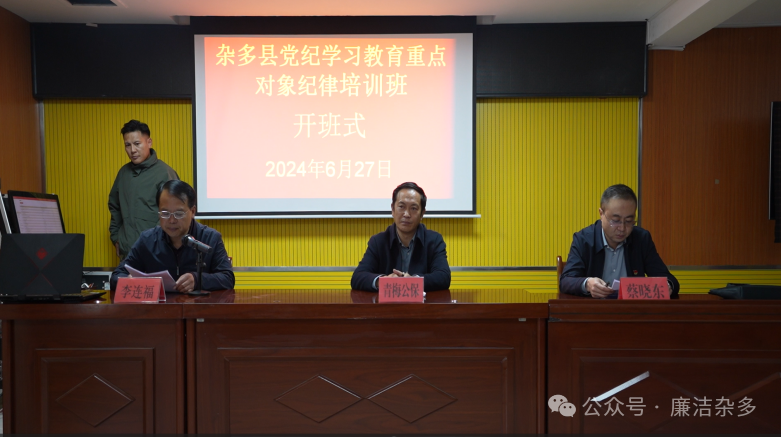 | 为扎实推动党纪学习教育走深走实,进一步增强党员干部学习贯彻《中国共产党纪律处分条例》(以下简称《条例》)的政治自觉、思想自觉和行动自觉,督促党员干部坚守廉洁底线,严守纪律规矩。6月27日,县委常委、纪委书记、监委主任青梅公保出席“杂多县党纪学习教育重点对象纪律培训班”开班仪式,并以严守党的“六大纪律”为题,为全县各重点行业领域主要负责人、各乡镇党政领导及新提任领导干部等讲授专题纪律党课。