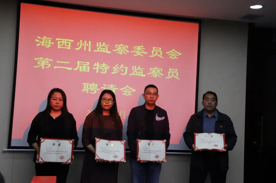 会议强调,担任特约监察员是组织信任,必须坚决扛起责任担当。要提升能力善履职,深入学习党章党规党纪和宪法法律法规,熟知纪检监察业务知识,为履行好特约监察员职责夯实工作基础;要主动作为敢担当,聚焦纪检监察机关的权力运行,加强对纪检监察工作和纪检监察干部的监督,发挥自身行业优势、知识优势和资源优势,以高水平的咨询建议为州纪委监委决策提供参考;要发挥桥梁纽带作用,广泛深入群众,倾听群众呼声,及时反映民意,深入宣传全州推进全面从严治党经验做法,用自己的方式讲好海西纪检监察故事;要遵纪守法严律己,带头遵守各项纪律规定,时时处处出严格要求自己,做清正廉洁的表率,切实维护好特约监察员队伍良好形象。