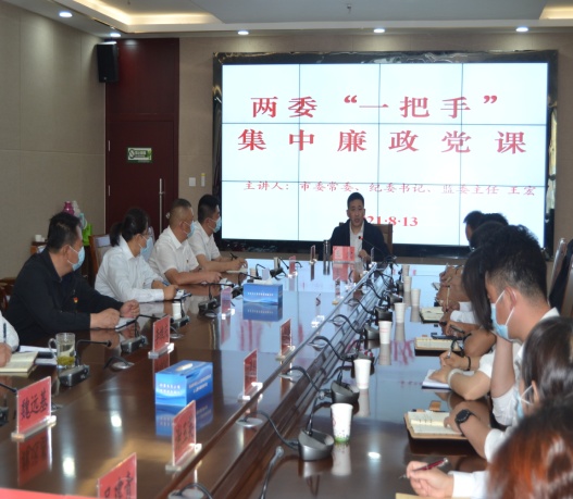 | 8月13日,根据全省纪检监察工作会议要求,格尔木市委常委、市纪委书记、监委主任王宏重点围绕党对 “一把手”监督的历程、“一把手”违纪违法典型案例、强化“一把手”履职尽责三个方面,为新任职乡镇街道两委“一把手”讲专题廉政党课,为新任“一把手”系紧廉洁的第一颗扣子,体现了组织对干部的关心关爱和教育监督。